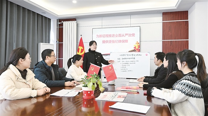 河南省洛陽市偃師區(qū)紀委監(jiān)委將學習新修訂的紀律處分條例作為今年紀律教育的“第一課”,推動紀檢監(jiān)察干部深刻認識修訂紀律處分條例的重要意義和豐富內(nèi)涵,將學習成果內(nèi)化于心、外化于行。圖為該區(qū)紀委監(jiān)委機關(guān)第五黨支部組織學習新修訂的紀律處分條例。 牛光衛(wèi) 攝