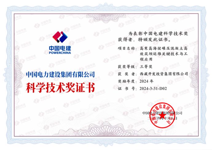 日前,中國(guó)電建集團(tuán)公布了2024年度中國(guó)電建科學(xué)技術(shù)獎(jiǎng)獲獎(jiǎng)項(xiàng)目名單,西藏開(kāi)投集團(tuán)果多水電站創(chuàng)新成果——“高寒高海拔碾壓混凝土高效筑壩關(guān)鍵技術(shù)與工程應(yīng)用”榮獲中國(guó)電建科學(xué)技術(shù)獎(jiǎng)三等獎(jiǎng)。