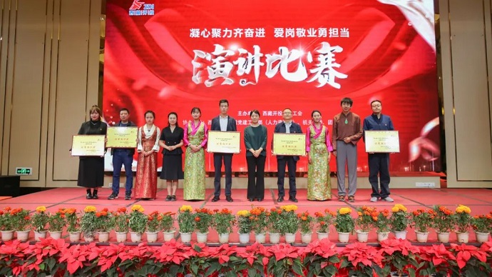 值此中國共產(chǎn)黨成立102周年和集團公司成立十周年之際,為扎實推進學(xué)習(xí)貫徹習(xí)近平新時代中國特色社會主義思想主題教育走深走實,7月13日,由西藏開發(fā)投資集團有限公司工會主辦,黨建工作部(人力資源部)、機關(guān)黨委、團委、婦委會聯(lián)合承辦的“凝心聚力齊奮進 愛崗敬業(yè)勇?lián)?dāng)”主題演講比賽在拉薩邦錦花園酒店成功舉辦。區(qū)黨委宣傳部干部處處長、一級調(diào)研員楊啟宏,區(qū)政府國資委機關(guān)黨委專職副書記卓瑪,區(qū)總工會宣教部四級調(diào)研員王政全等領(lǐng)導(dǎo),集團公司黨委副書記、副董事長、總經(jīng)理劉剛,集團公司黨委委員、董事、總會計師陳焱罡,集團公司黨委委員、區(qū)紀委監(jiān)委駐集團公司紀檢監(jiān)察組組長羅布次仁,集團公司黨委委員、副總經(jīng)理、工會主席、機關(guān)黨委書記溫勇出席活動并為獲獎選手頒獎。