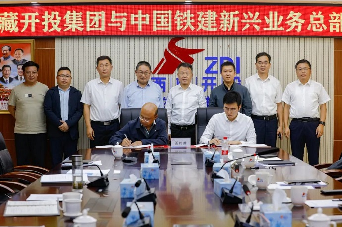 8月15日,西藏開發(fā)投資集團(tuán)有限公司黨委書記、董事長祁騰武會(huì)見來訪的中國鐵建股份有限公司新興業(yè)務(wù)總部黨委書記、總經(jīng)理賈洪一行,雙方就加強(qiáng)溝通、深化合作等相關(guān)事宜座談交流并簽訂戰(zhàn)略合作協(xié)議。集團(tuán)公司領(lǐng)導(dǎo)陳焱罡、鄧強(qiáng),中國鐵建新興業(yè)務(wù)總部副總經(jīng)理李兢、中鐵十四局集團(tuán)副總經(jīng)理石宗濤等參加座談。