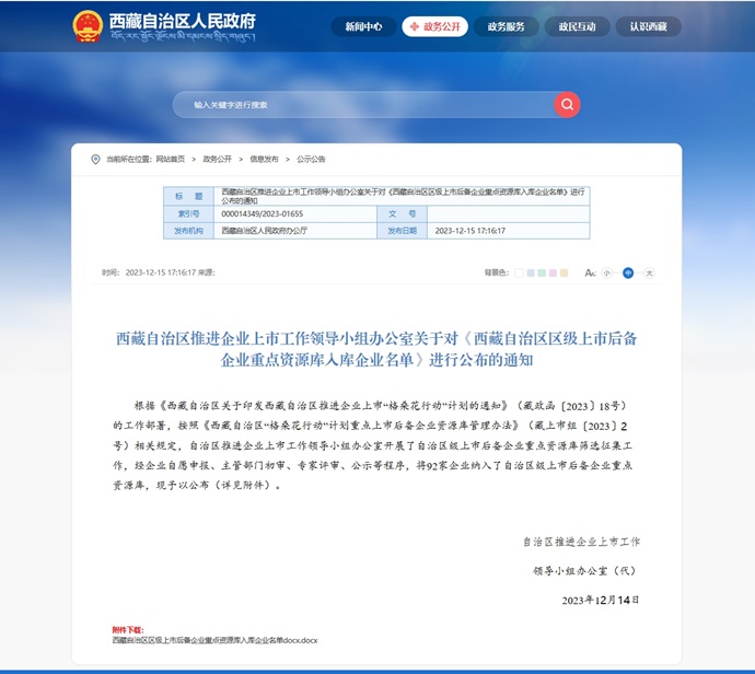 為積極響應(yīng)自治區(qū)人民政府《西藏自治區(qū)推進(jìn)企業(yè)上市“格?;ㄐ袆?rdquo;計劃》等文件精神,經(jīng)過自愿申報、主管部門初審、專家評審和公示等程序,近日,西藏自治區(qū)推進(jìn)企業(yè)上市工作領(lǐng)導(dǎo)小組辦公室公布了全區(qū)上市后備企業(yè)資源庫名單。西藏開發(fā)投資集團(tuán)有限公司和西藏開投果多水電有限公司兩家企業(yè)成功入選西藏自治區(qū)“格?;ㄐ袆?rdquo;計劃重點上市后備企業(yè)資源庫。