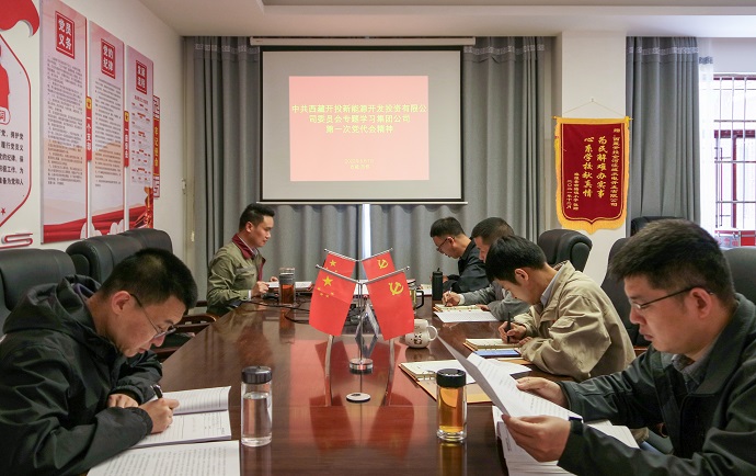 會議要求,一要深刻認識集團公司第一次黨代會的重大意義和豐富內(nèi)涵,把學(xué)習(xí)好、宣傳好、貫徹好黨代會精神作為當(dāng)前一段時間最大的政治任務(wù),迅速在新能源公司上下掀起學(xué)習(xí)黨代會精神的熱潮。通過黨委理論學(xué)習(xí)中心組集中學(xué)習(xí)、支部會議、研討會等多種方式,堅持集中學(xué)習(xí)和個人自學(xué),通讀報告與專題研討相結(jié)合,確保學(xué)習(xí)宣傳貫徹取得實實在在的效果。二要將學(xué)習(xí)集團公司第一次黨代會精神與改進作風(fēng)狠抓落實工作結(jié)合起來,與按期推動吉塘一期20萬千瓦光伏項目結(jié)合起來,并以此為主線,所有工作都要往這條主線聚焦。從黨委到各黨支部、各部門逐級有序深入組織學(xué)習(xí)宣傳貫徹黨代會精神活動,確保學(xué)習(xí)貫徹黨代會精神實現(xiàn)全覆蓋,確保學(xué)習(xí)一個不少,人人參與。三要把新能源公司各項工作融于集團公司發(fā)展戰(zhàn)略全局考慮,聚焦“四件大事”“四個確保”,聚力“四個創(chuàng)建”“四個走在前列”,切實把集團公司第一次黨代會精神落實到新能源公司主責(zé)主業(yè)和今年各項工作目標(biāo)及明年工作超前謀劃之中,推動學(xué)習(xí)貫徹往實里走、往深里走,為助力集團公司高質(zhì)量發(fā)展凝聚磅礴力量,在集團公司“二次創(chuàng)業(yè)”中以實績展現(xiàn)新能源公司新?lián)?dāng)、新作為、新形象。