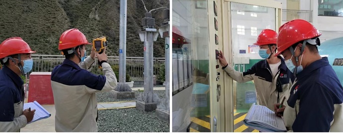 運(yùn)維值班人員分別對(duì)廠內(nèi)水輪發(fā)電機(jī)組的勵(lì)磁系統(tǒng)、保護(hù)盤(pán)柜、調(diào)速器控制系統(tǒng)、潤(rùn)滑油站、振擺監(jiān)測(cè)柜、出口開(kāi)關(guān)柜等系統(tǒng)和廠外35千伏升壓站主變、互感器、斷路器、母線、避雷器等設(shè)備進(jìn)行大約需要一個(gè)小時(shí)的巡檢和特巡,通過(guò)檢查設(shè)備的運(yùn)行方式、隱患和缺陷等情況,全力保障機(jī)組安全穩(wěn)定運(yùn)行。