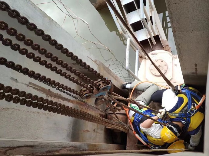 9月5日11時(shí)30分,果多水電站上游來(lái)水量突增,水庫(kù)攔污漂變浮箱無(wú)法及時(shí)上浮,導(dǎo)致大量垃圾飄進(jìn)進(jìn)水口區(qū)域,給機(jī)組運(yùn)行造成一定的安全隱患。吉克爾博接到部門(mén)安排后,馬上帶領(lǐng)兩名青年員工到浮箱上利用千斤頂、手動(dòng)葫蘆等工具開(kāi)展處理。經(jīng)過(guò)分析、討論,判定攔污漂卡澀的原因?yàn)閷?dǎo)向輪長(zhǎng)期受力不均發(fā)生變形,利用千斤頂反向作用力和手拉葫蘆的牽引力,最終將攔污漂卡澀問(wèn)題解決。
