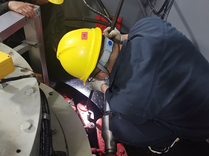 藏中電網(wǎng)異步聯(lián)網(wǎng)運(yùn)行期間,雷雨季節(jié)易受雷擊容易跳閘。根據(jù)《電網(wǎng)運(yùn)行風(fēng)險(xiǎn)預(yù)警通知單》要求,金橋水電站及時(shí)調(diào)整運(yùn)行方式。9月17日至18日,利用機(jī)組停機(jī)時(shí)間,公司組織對(duì)1號(hào)、2號(hào)機(jī)組開展過流部件檢查工作,及時(shí)對(duì)蝸殼異物進(jìn)行清理和更換剪斷銷,全力保障機(jī)組安全穩(wěn)定運(yùn)行。