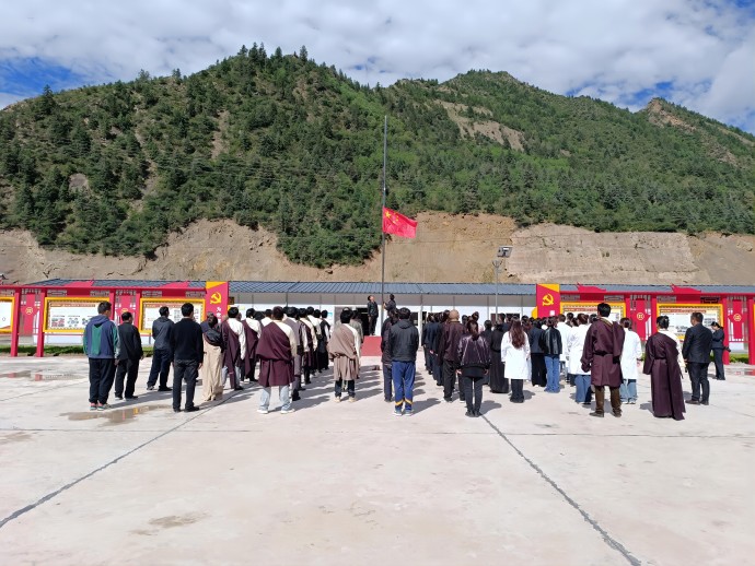 7月1日,果多水電公司黨支部應(yīng)柴維鄉(xiāng)人民政府黨委邀請(qǐng),參加柴維鄉(xiāng)黨委政府組織的“慶祝中國(guó)共產(chǎn)黨成立102周年暨‘七·一’建黨日”活動(dòng),活動(dòng)在莊嚴(yán)的升旗儀式中拉開(kāi)序幕,全鄉(xiāng)各村居、企事業(yè)單位在場(chǎng)人員全體肅立,伴著莊嚴(yán)神圣的國(guó)歌,五星紅旗冉冉升起。