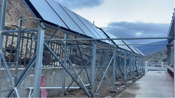 日喀則市定日縣曲當(dāng)鄉(xiāng)德吉村、優(yōu)帕村、嚴(yán)曲村位于珠穆朗瑪峰自然保護區(qū)核心區(qū),均為定日縣偏遠邊境鄉(xiāng)村。項目供暖總面積為593.39m2,包括太陽能集熱器系統(tǒng)、輔助熱源(空氣源熱泵),儲熱系統(tǒng)、末端設(shè)施,光伏發(fā)電系統(tǒng),建筑節(jié)能改造等內(nèi)容。在日喀則市發(fā)改委的領(lǐng)導(dǎo)下,南亞公司(西藏開投下屬二級公司)以人為本、科學(xué)管理、精心組織,克服設(shè)備運輸艱難、人員組織困難、施工機械短缺、項目工期緊張等種種困難,如期實現(xiàn)了項目投產(chǎn)。同時,為評估和提升項目效能,配套了PLC自控柜,對供暖數(shù)據(jù)進行遠程收集及數(shù)據(jù)分析。在本項目運行一個采暖期后,將對項目的規(guī)模效益、財務(wù)效益、綜合效益進行綜合評價,并對清潔能源供暖方式替代傳統(tǒng)燃料的減碳效果進行科學(xué)分析,確保形成村居供暖工程可靠性好、性價比高、適宜推廣的決策方案,為全面復(fù)制推廣實施全區(qū)農(nóng)牧區(qū)清潔供暖供熱項目做出貢獻。
