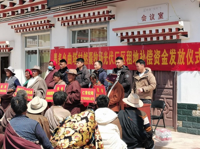 4月11日,金上光伏公司協(xié)同芒康昂多鄉(xiāng)政府舉行金上昌都貢覺拉妥700兆瓦光伏發(fā)電項目光伏陣列區(qū)租賃費用發(fā)放儀式。此次發(fā)放儀式涉及昂多鄉(xiāng)曲塔村群眾90戶,共計費用(2023年-2028年)約1468萬元。