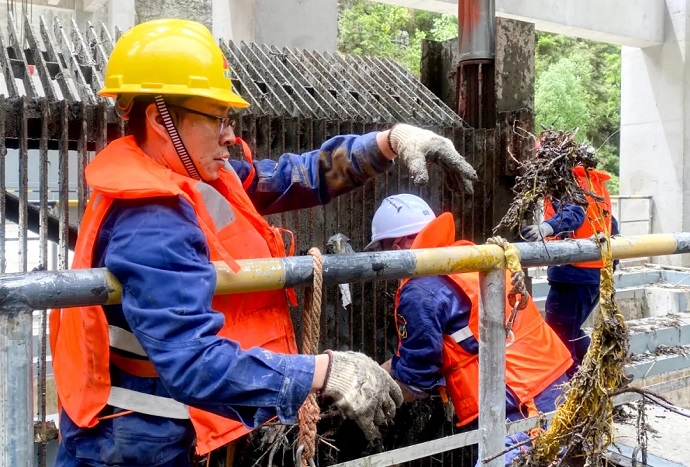 5月31日,金橋水電公司聞“汛”而動,迅速投入到攔污柵清污工作中。大家分工合作,相互配合,通過采取多種方法,經(jīng)過6個小時的辛勤勞作,清除了兩孔攔污柵全部堵塞物,確保了進水口攔污柵“零”壓差,保障了金橋水電站的正常運行和發(fā)電安全,同時也為2024年公司安全度汛奠定了基礎(chǔ)。