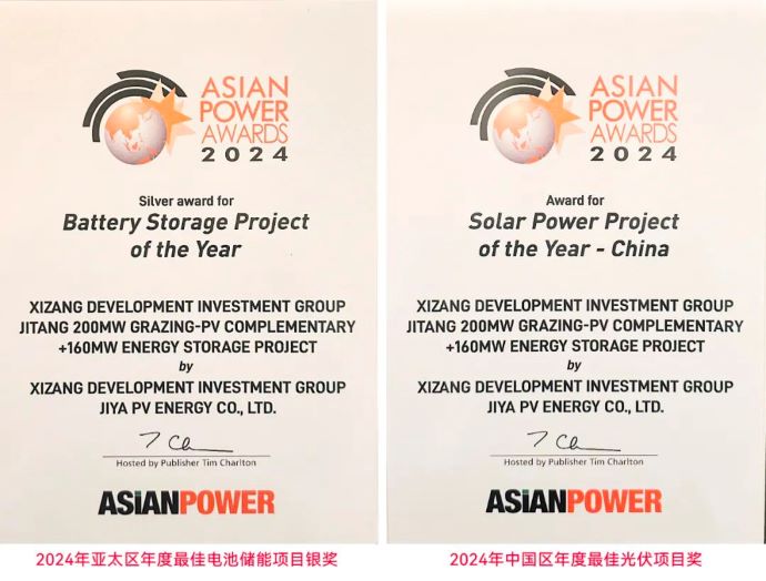 10月22日,2024年度亞洲能源大獎(2024 Asian Power Awards)獲獎名單在新加坡正式揭曉,由西藏開投吉雅光伏公司主導建設并運營的吉塘200MW+160MWh儲能牧光互補復合型光伏項目榮膺“2024年亞太區(qū)年度最佳電池儲能項目銀獎”和“2024年中國區(qū)年度最佳光伏項目獎”兩項大獎。