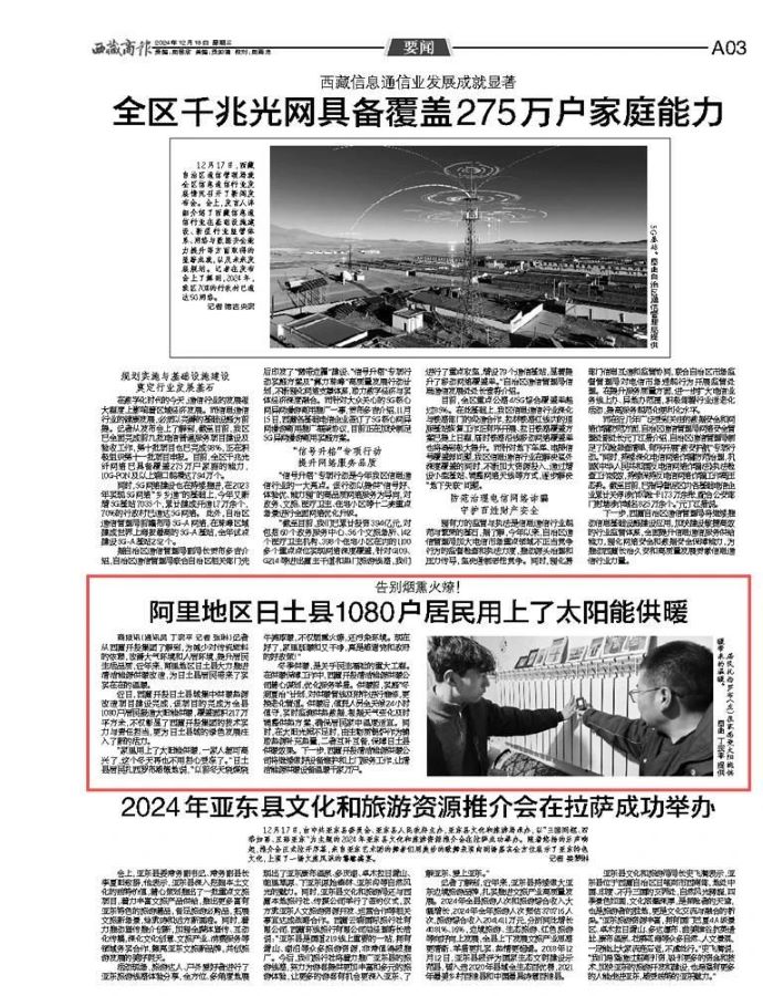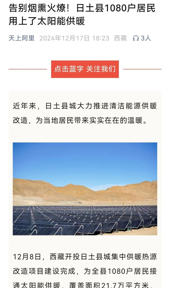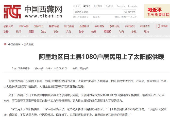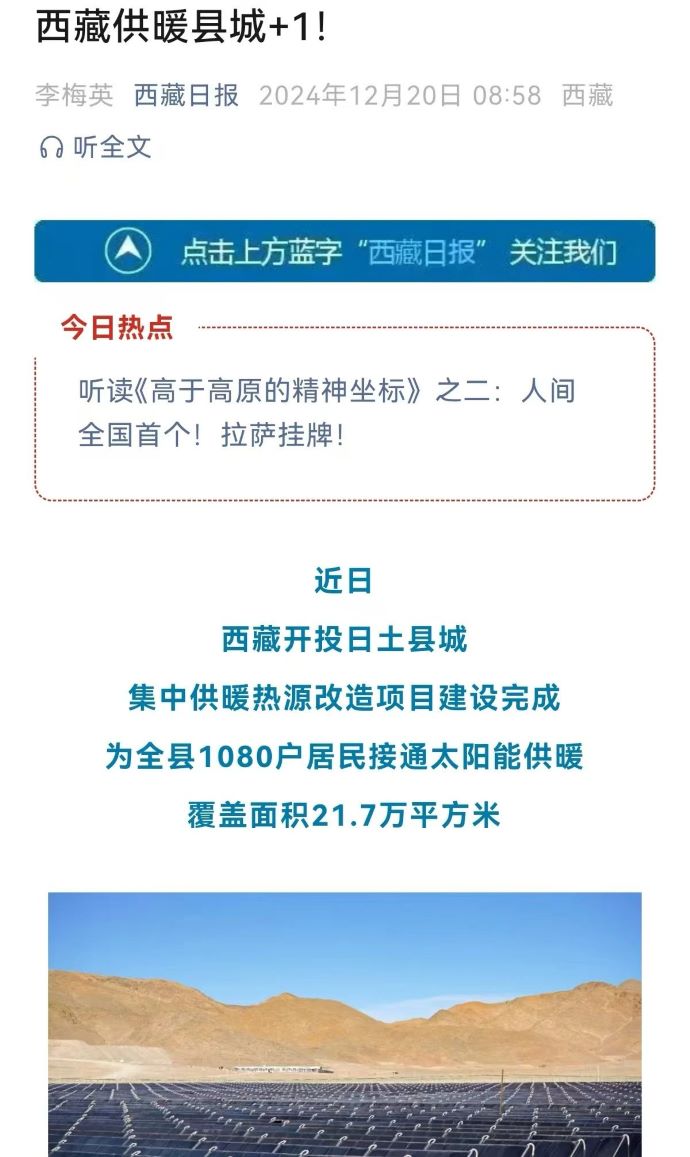 媒體報道丨告別煙熏火燎!日土縣1080戶居民用上了太陽能供暖