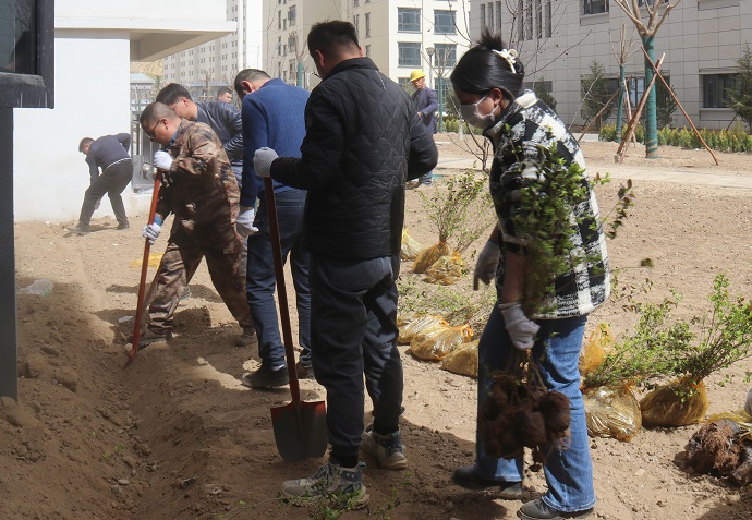 經過一個多小時緊張忙碌,共栽種金葉女貞150㎡。一棵棵新栽的樹苗迎風挺立,為初春大地和能源基地增添了新的生機與活力。