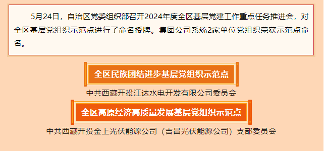捷報傳來丨西藏開投這些黨組織被評為2023年度全區(qū)基層黨組織示范點