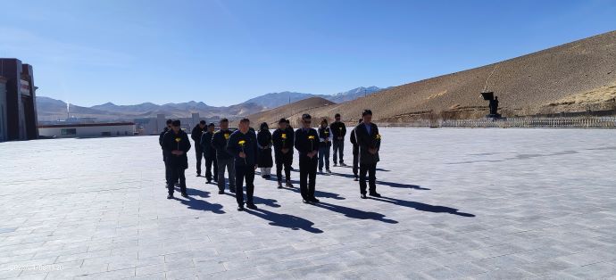 全體干部職工向革命烈士紀(jì)念碑深鞠躬、默哀、敬獻(xiàn)鮮花,表達(dá)了對(duì)建設(shè)社會(huì)主義新西藏犧牲的烈士先輩的無(wú)限敬仰與哀思。