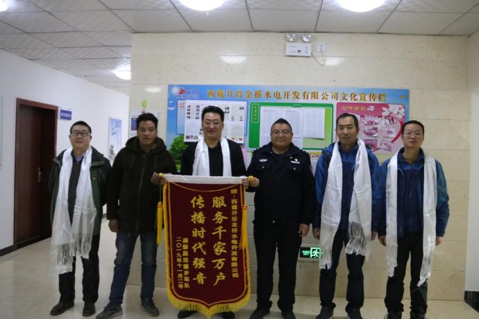 12月4日,尼屋鄉(xiāng)派出所副所長(zhǎng)多吉帶領(lǐng)尼屋鄉(xiāng)扶貧車(chē)隊(duì)代表將“服務(wù)千家萬(wàn)戶 傳播時(shí)代強(qiáng)音”錦旗遞送到西藏開(kāi)投金橋水電開(kāi)發(fā)有限公司(以下簡(jiǎn)稱(chēng)“金橋公司”)副總經(jīng)理李輝手中,表達(dá)對(duì)金橋公司的深深謝意。