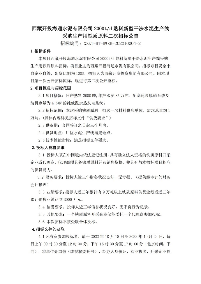 采購(gòu)生產(chǎn)用鐵質(zhì)原料二次招標(biāo)公告