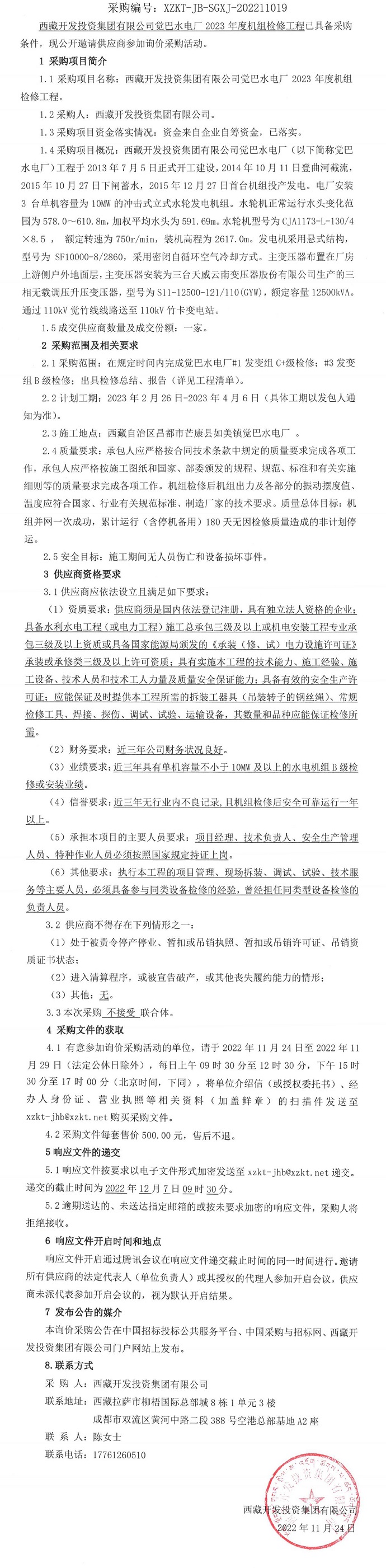 機(jī)組檢修工程詢(xún)價(jià)采購(gòu)公告