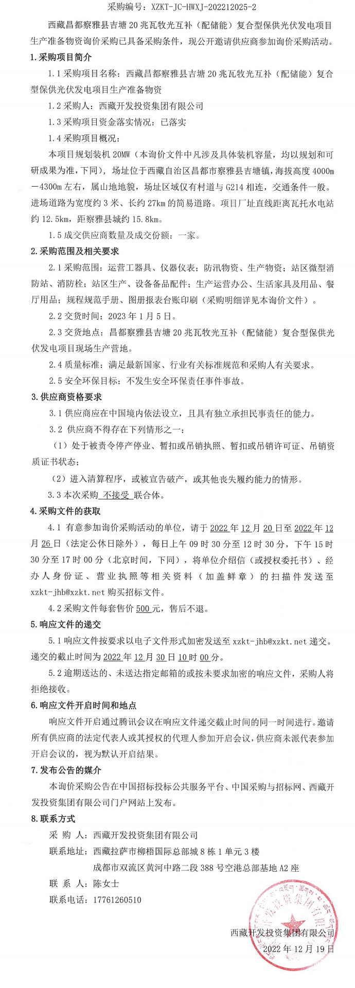 生產(chǎn)準(zhǔn)備物資詢價采購二次公告