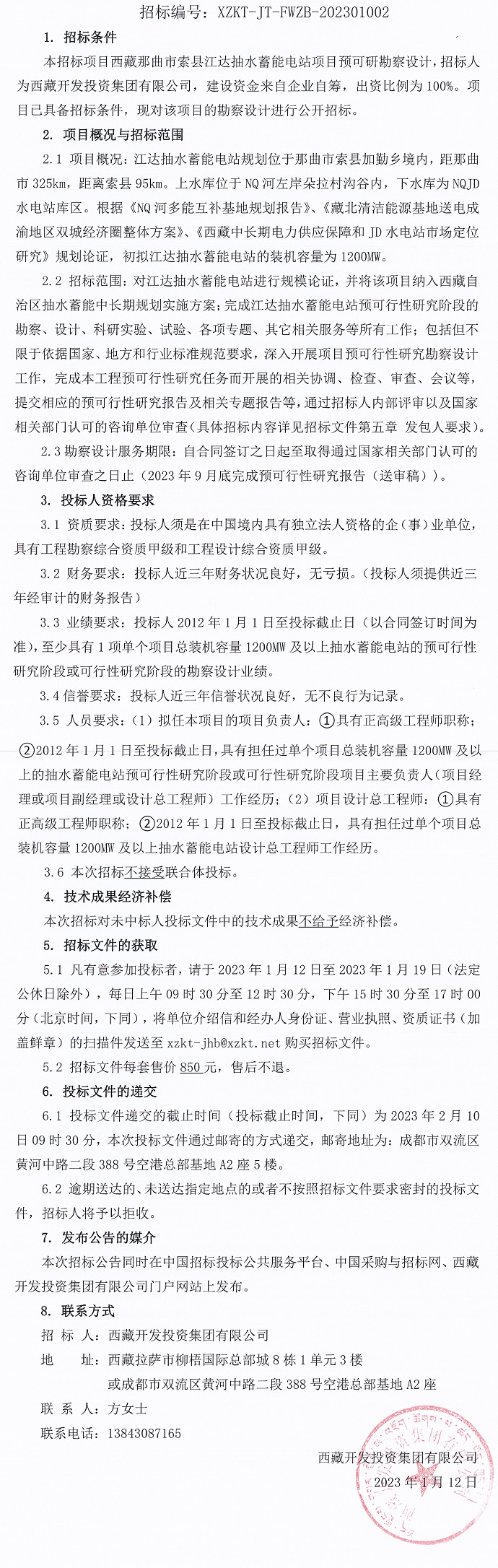 西藏那曲市索縣江達抽水蓄能電站項目預可研勘察設計招標公告