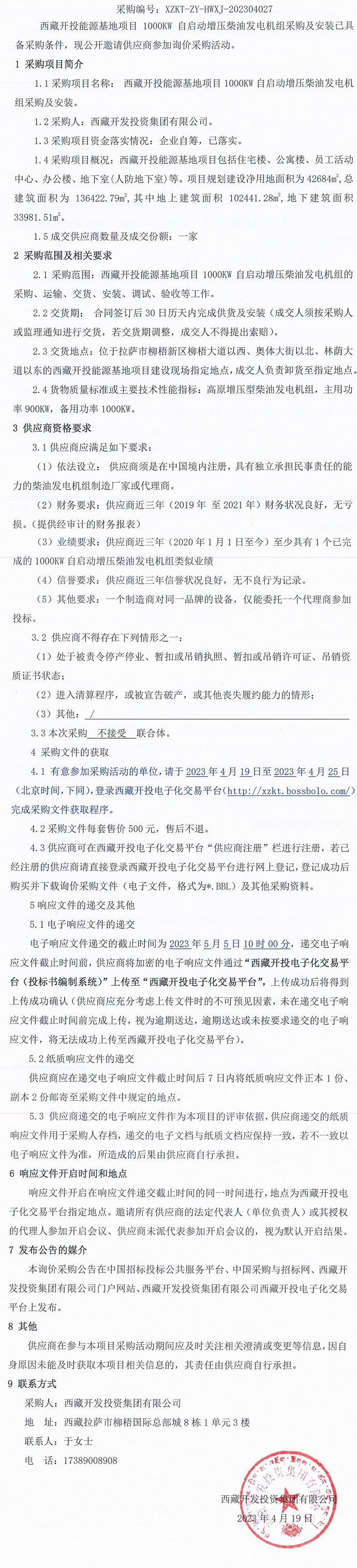 西藏開投能源基地項(xiàng)目1000KW自啟動(dòng)增壓柴油