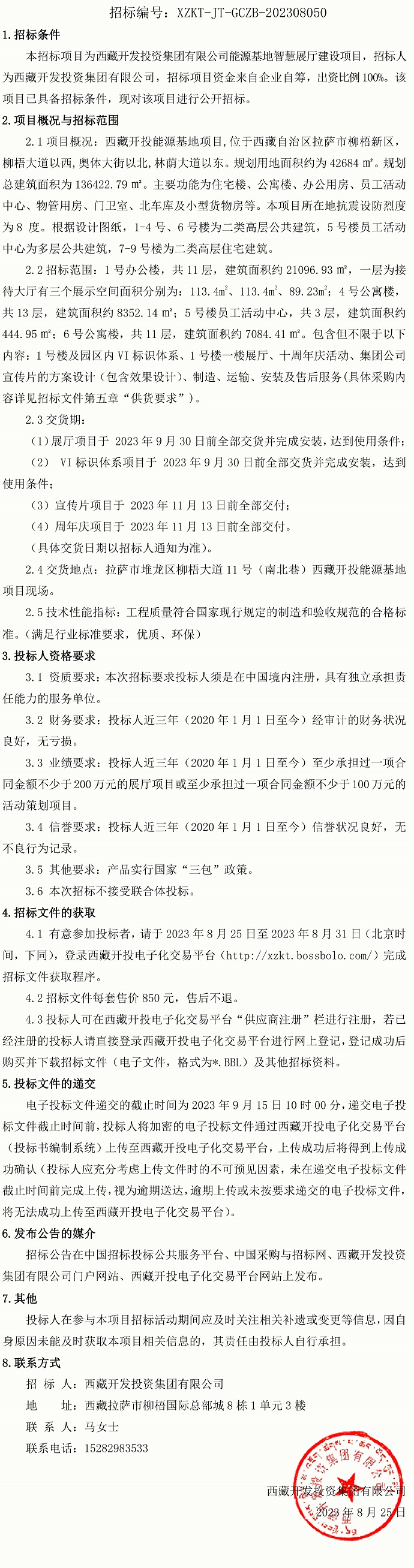 西藏開發(fā)投資集團有限公司能源基地智慧展廳建設(shè)項目招標(biāo)公告