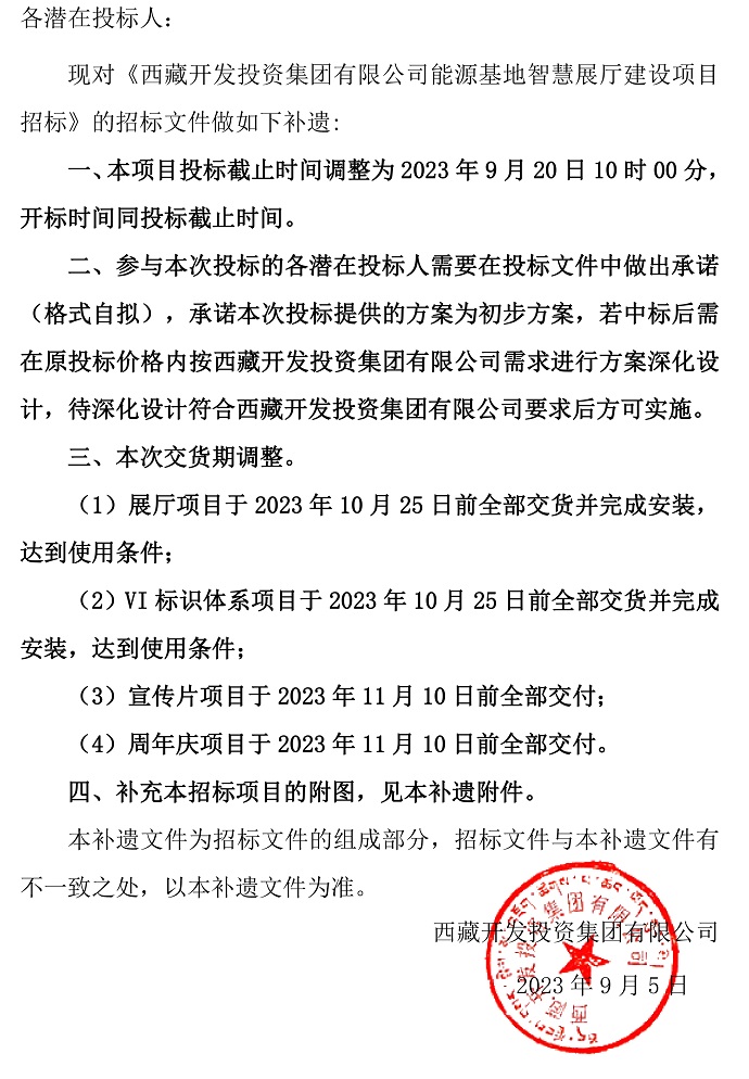 西藏開發(fā)投資集團有限公司能源基地智慧展廳建設(shè)項目招標