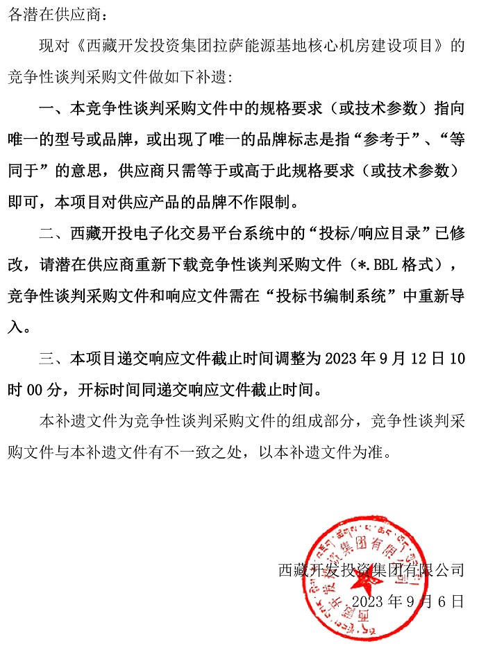 西藏開發(fā)投資集團(tuán)拉薩能源基地核心機(jī)房建設(shè)項(xiàng)目