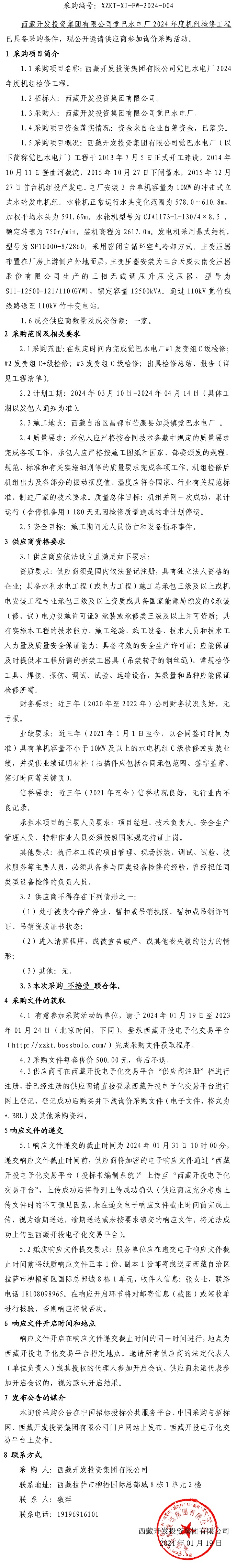 西藏開(kāi)發(fā)投資集團(tuán)有限公司覺(jué)巴水電廠2024年度機(jī)組檢修工程詢價(jià)采購(gòu)公告