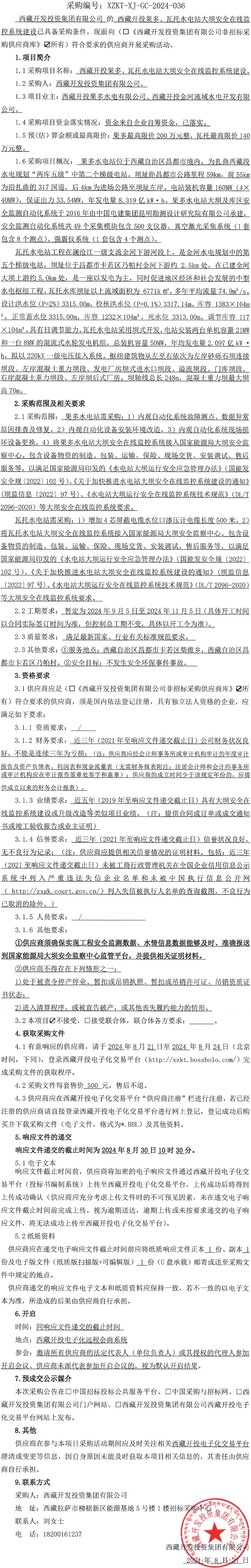 西藏開投果多、瓦托水電站大壩安全在線監(jiān)控系統(tǒng)建設(shè)詢價采購公告