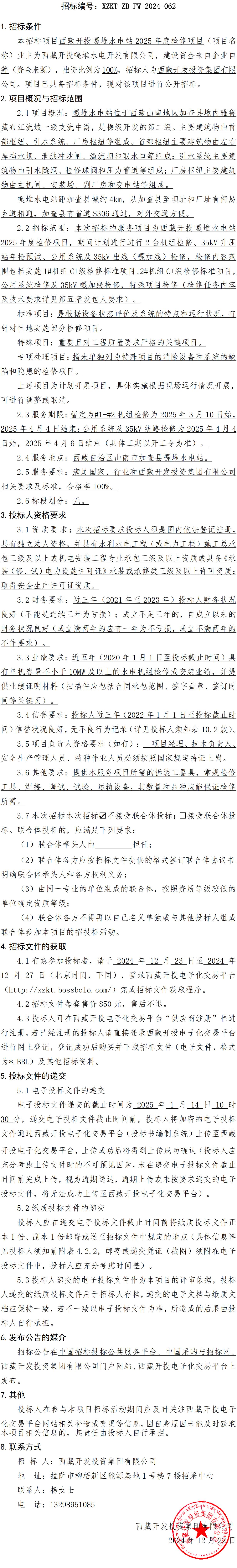 西藏開投嘎堆水電站2025年度檢修項目招標(biāo)公告
