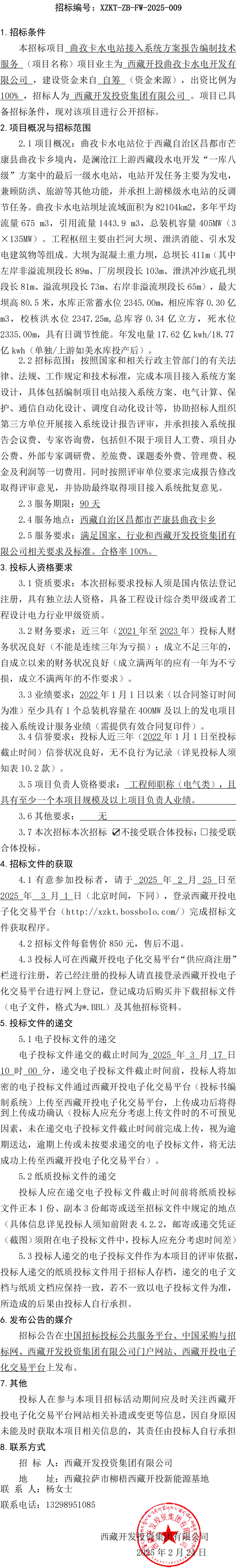 曲孜卡水電站接入系統(tǒng)方案報告編制技術(shù)服務(wù)招標(biāo)公告