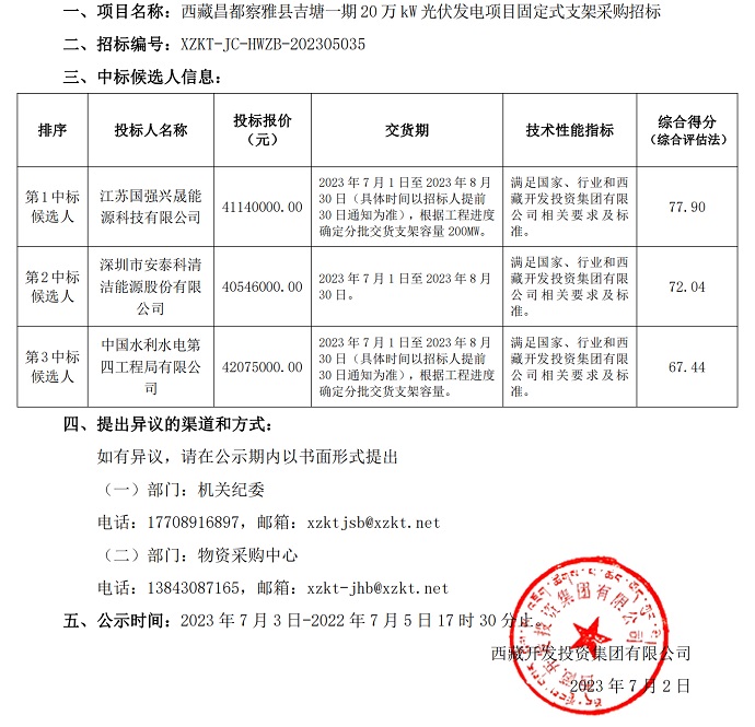 中標(biāo)候選人公示