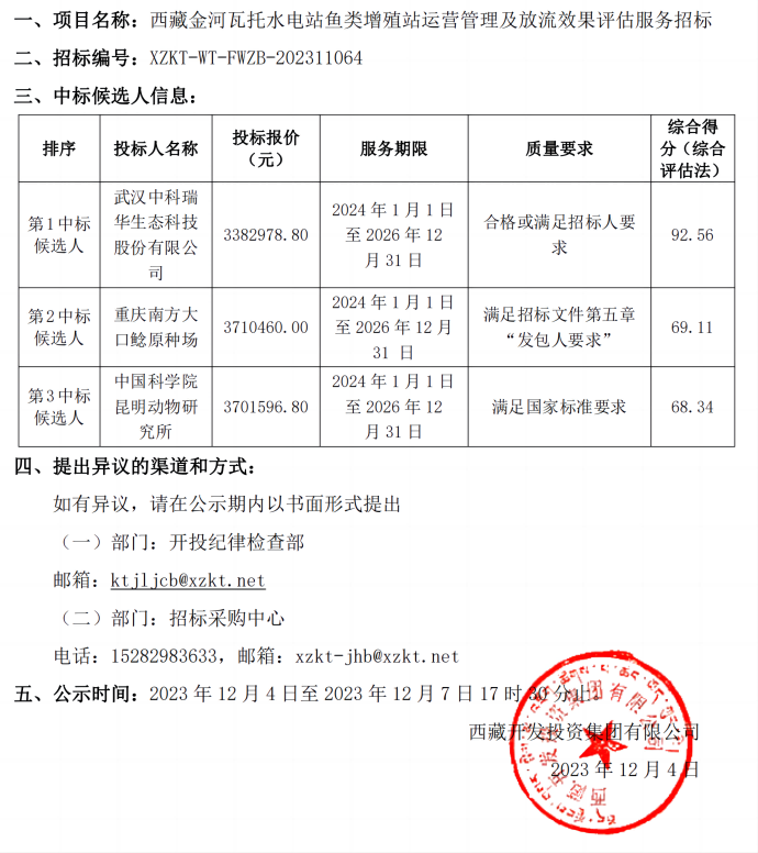 中標(biāo)候選人公示